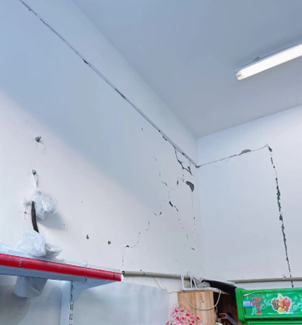 圖1 某框架結構填充墻與梁間出現裂縫、墻體自身出現斜裂縫